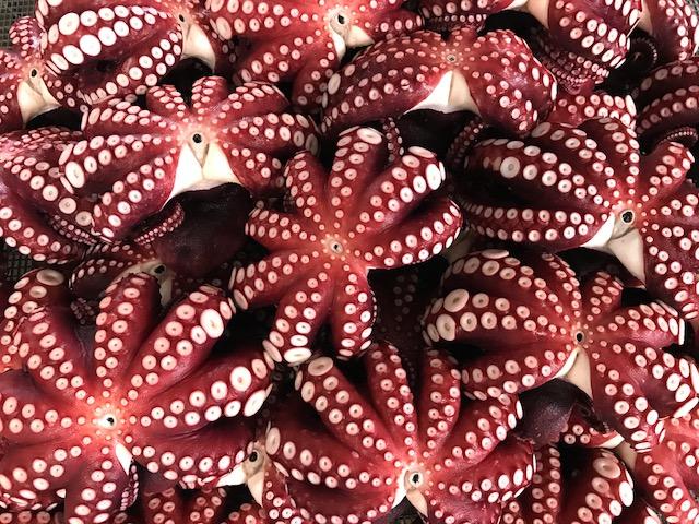 エサが豊富な寒流と暖流がぶつかる潮目の海と呼ばれる豊富な漁場「常磐沖」で穫れる鮮度の良い活タコを直接漁港まで足を運び見極め、春は゛やなぎタコ゛、夏は゛水タコ゛冬は近海゛真タコ゛と季節ごとに水揚げされる旬のタコを買い付けます。